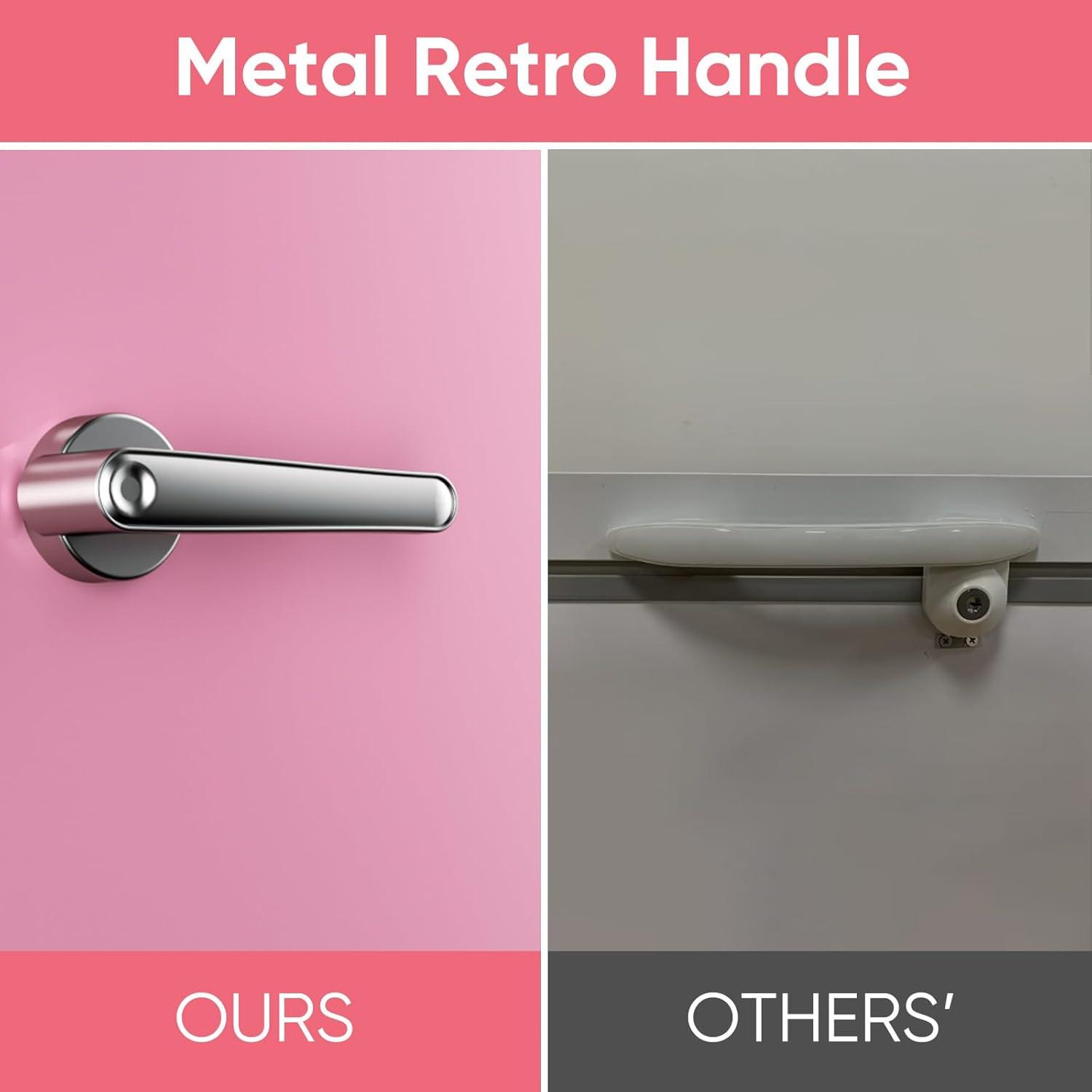Retro Design: Featuring a classic exterior with metal handle and side bottle opener, the overall appearance of this retro refrigerator is stylish and high texture. It's not only a practical appliance, but also elevates your home decor