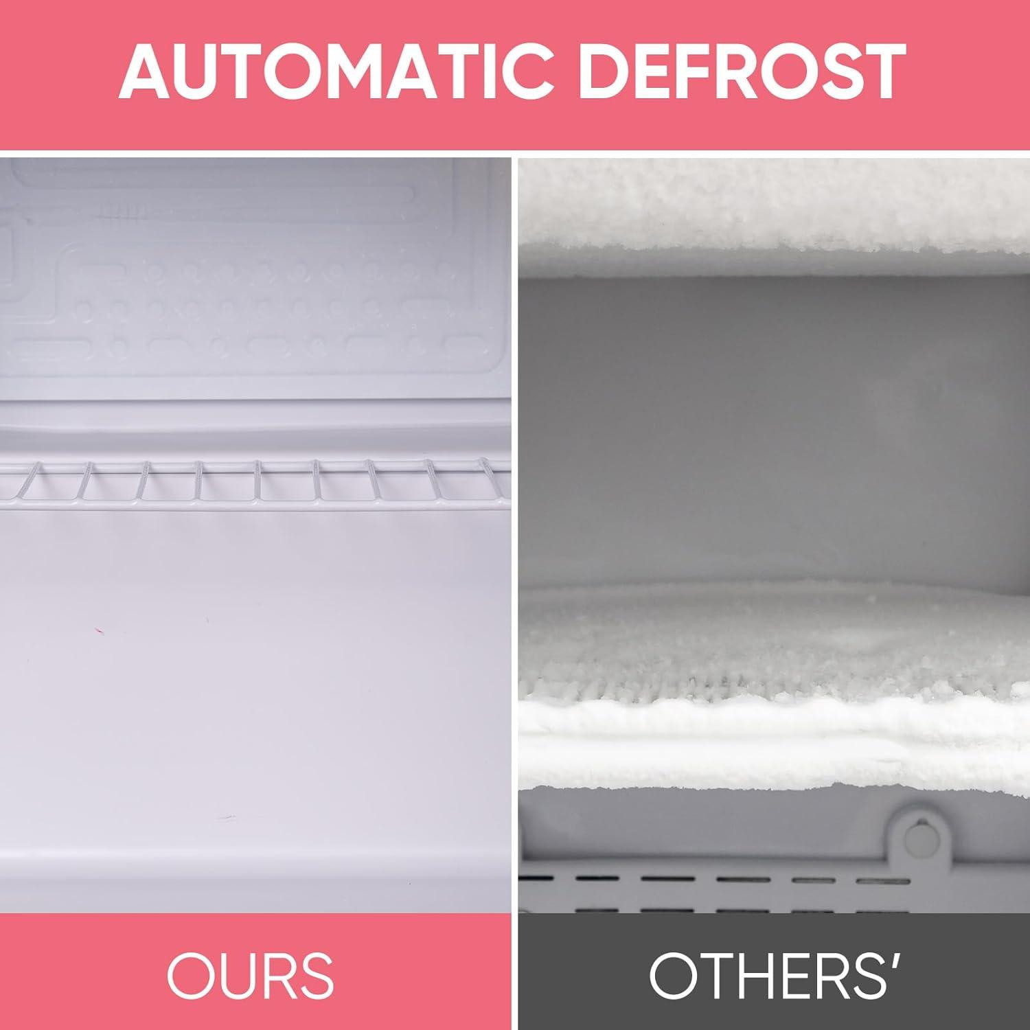 Quiet & Energy-Efficient: Operating at a low noise of 38 dB and equipped with automactic defrost technology, this mini fridge consumes just 245 kWh annually, delivering energy savings without compromising comfort. It's more economical for long-term use. Making it ideal for office, bedroom or dorm