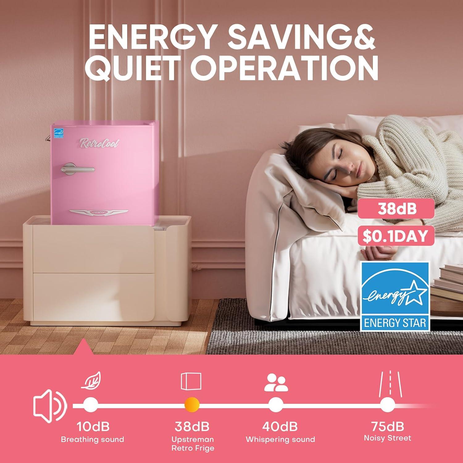 Be the first to review “Upstreman 1.7 Cu.Ft Retro Mini Fridge, Low Noise, Energy Saving, Adjustable Thermostat, Single Door, Side Bottle Opener, Metal Handle, Compact Refrigerator for Office, Bedroom, Dorm-FR17 PRO (Pink)(Pink)”