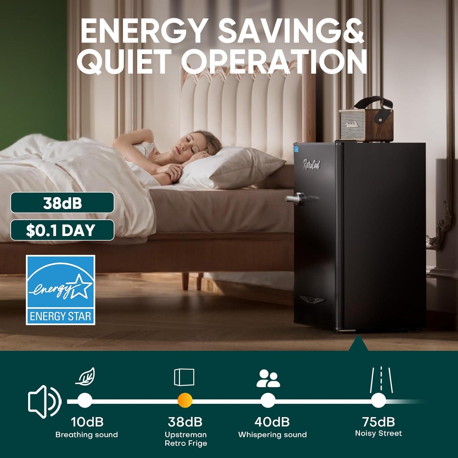 Quiet & Energy-Efficient: Operating at a whisper-quiet 38 dB and equipped with automactic defrost technology, this mini fridge consumes just 258 kWh annually, delivering energy savings without compromising comfort. It's more economical for long-term use. Making it ideal for office, bedroom or dorm