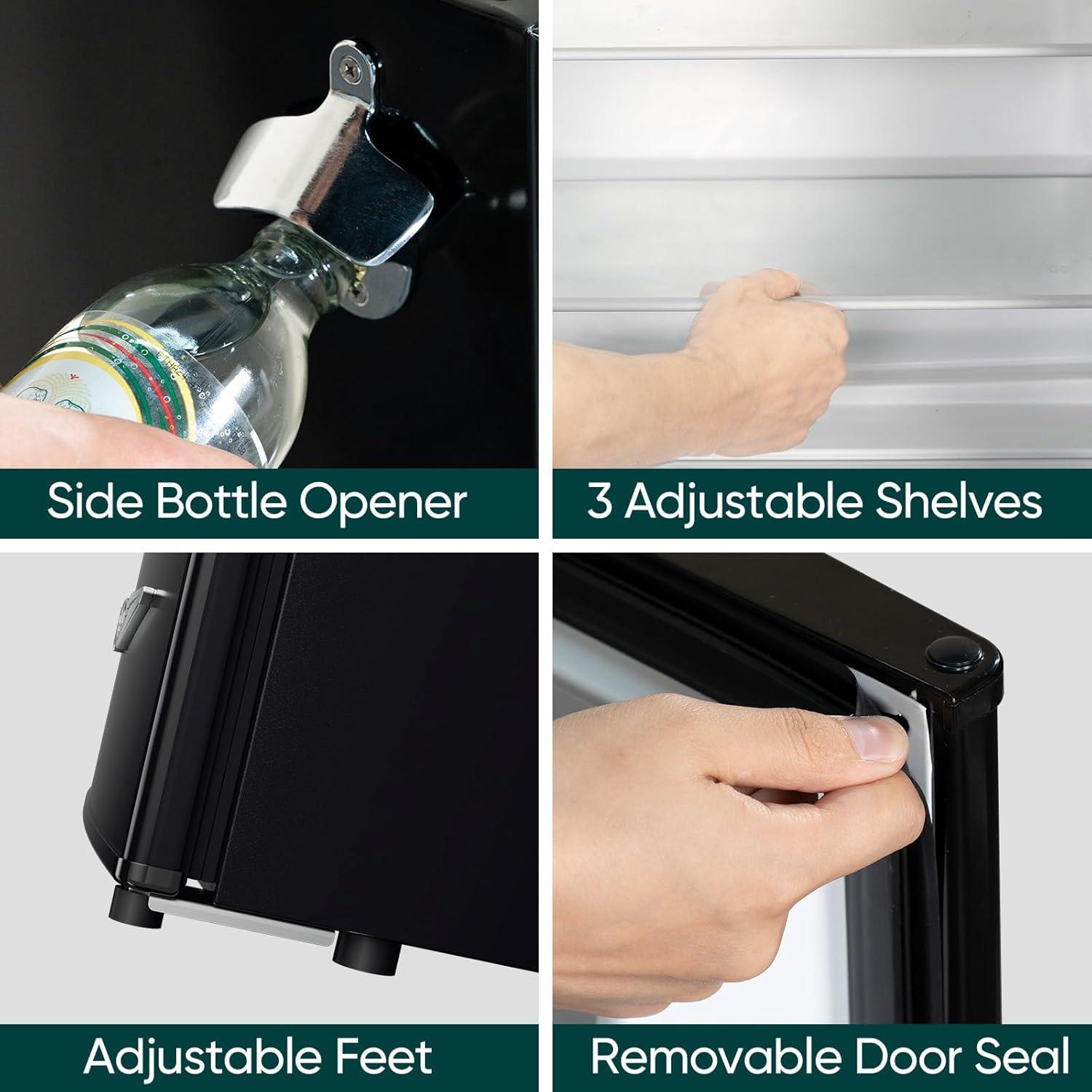 Retro Design: Featuring a classic exterior with metal handle and side bottle opener, the overall appearance of this retro refrigerator is stylish and high texture. It's not only a practical appliance, but also elevates your home decor